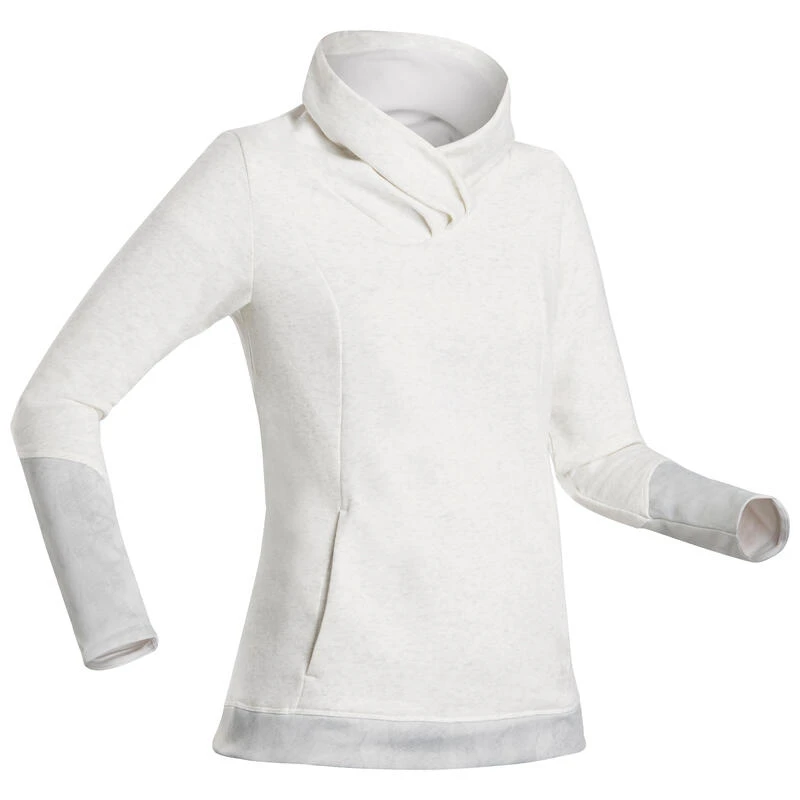Un sweat confortable et très féminin, qui protège du froid grâce à un grand col douillet et un dos long. Pratique pour vos randonnées : 1 sous-poche sécurisée est cachée dans la poche kangourou.